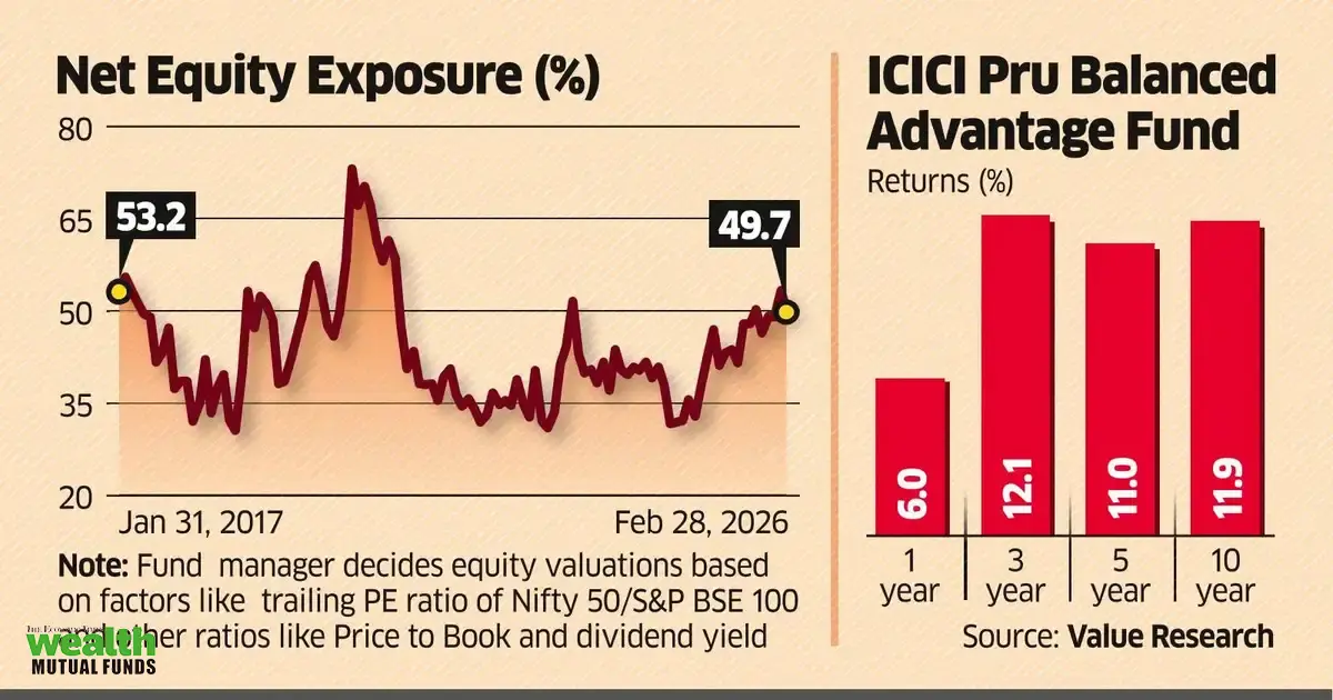 The ICICI Prudential Balanced Fund, the second-largest in its category with ₹71,150 crore in assets as of February 2026, has increased its equity allocation to 65%, marking the highest level in five years. This decision, co-managed by S Naren (Chief Investment Officer), reflects a growing comfort with market valuations following a recent sell-off. Naren stated that favorable valuation and sentiment indicators suggest it is an appropriate time for investors to gradually increase their equity allocation. The fund, which operates as a Balanced Advantage Fund, dynamically adjusts its equity and debt exposure based on market conditions, typically maintaining net equity exposure between 30% and 80%. However, Naren expressed caution, noting that while the current increase in equity exposure is reminiscent of 2020, return expectations should be more moderate due to global uncertainties. He emphasized the importance of using asset allocation funds to navigate market volatility effectively.